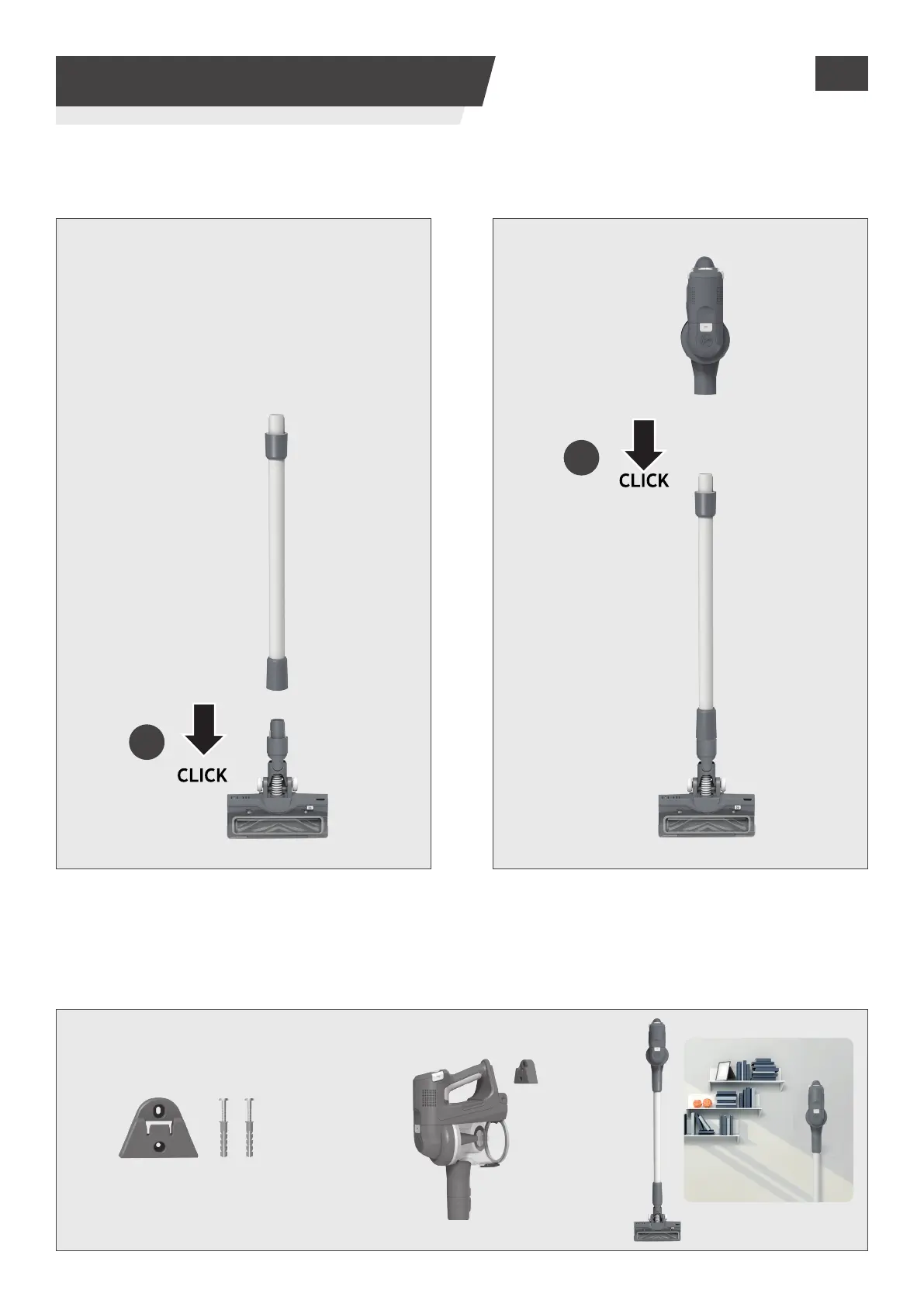 Coloque el tubo en la boquilla para suelo. PASO 2: Coloque la unidad portátil en el tubo.