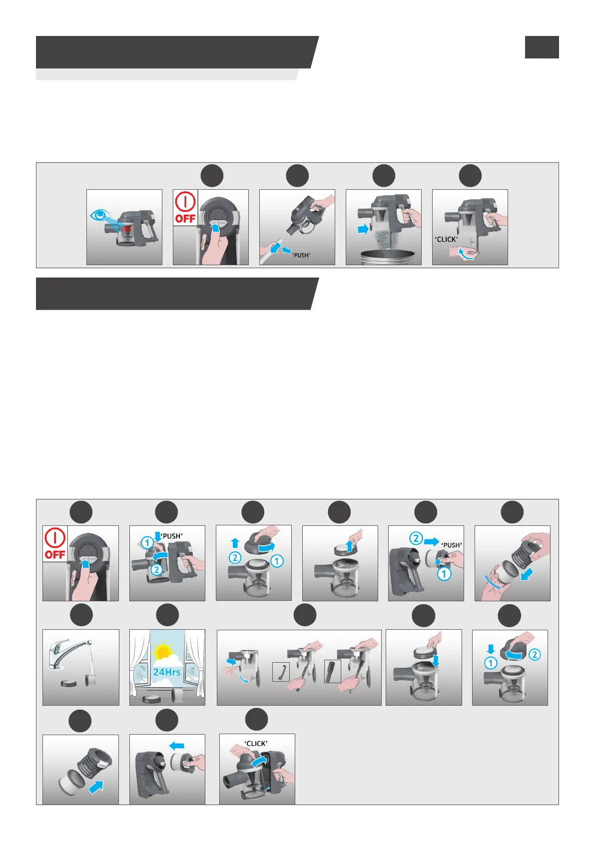 13. Sæt udsugningslteret på den håndholdte enhed igen, og sørg for, at det er låst på plads.