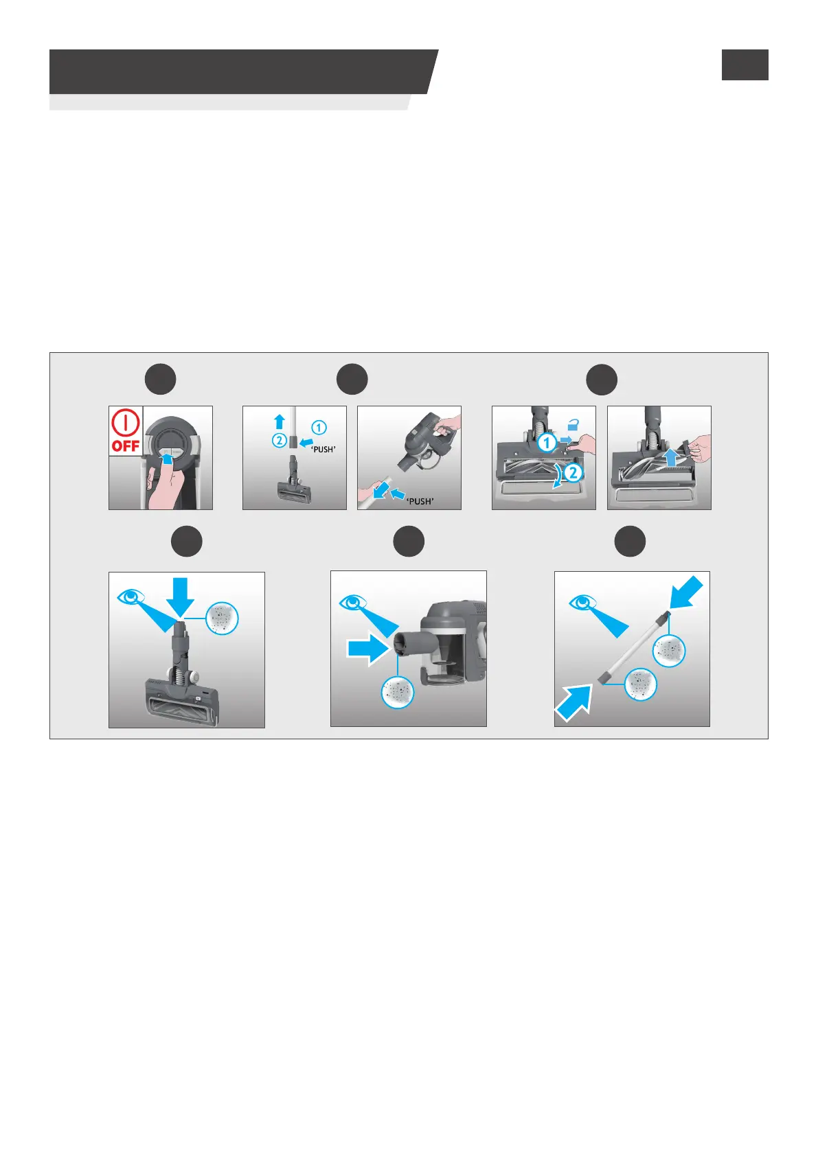 2. Løsne munnstykket for gulv, skaftet og den håndholdte enheten som beskrevet tidligere.