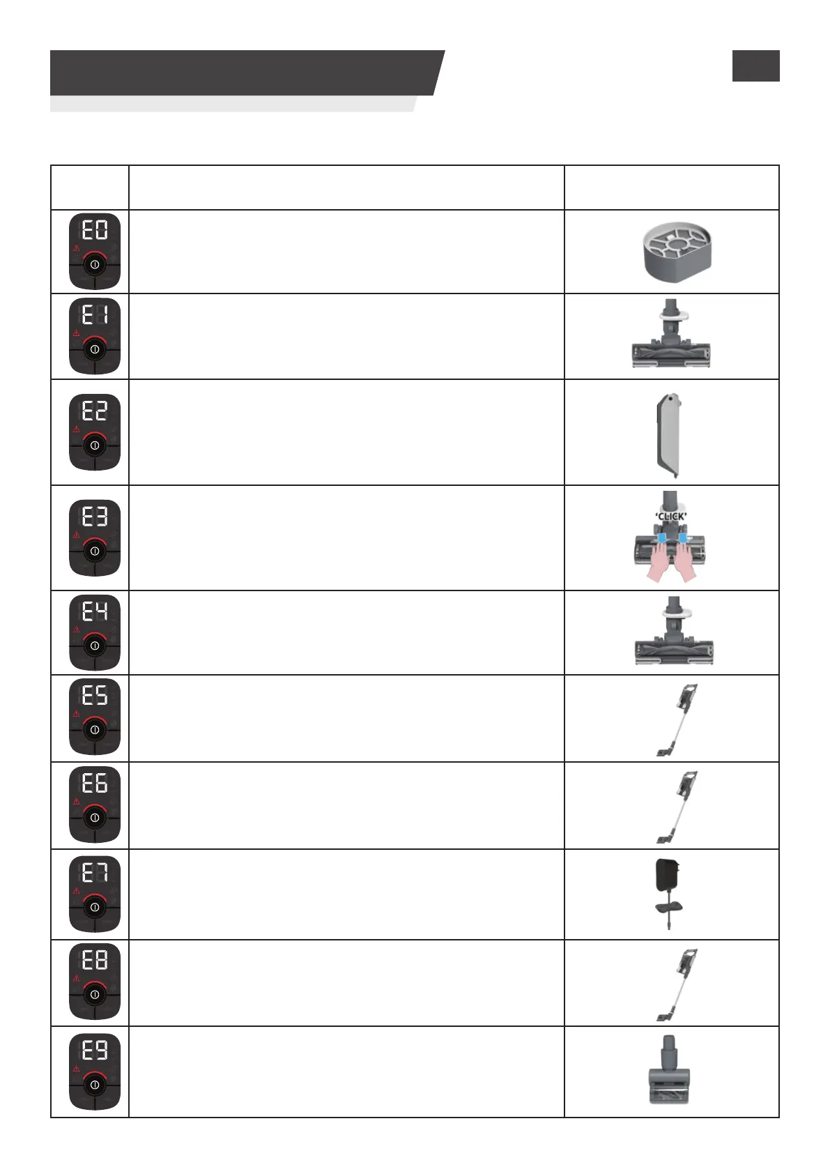 E9 indique qu’il y a un blocage dans la mini turbobrosse.
