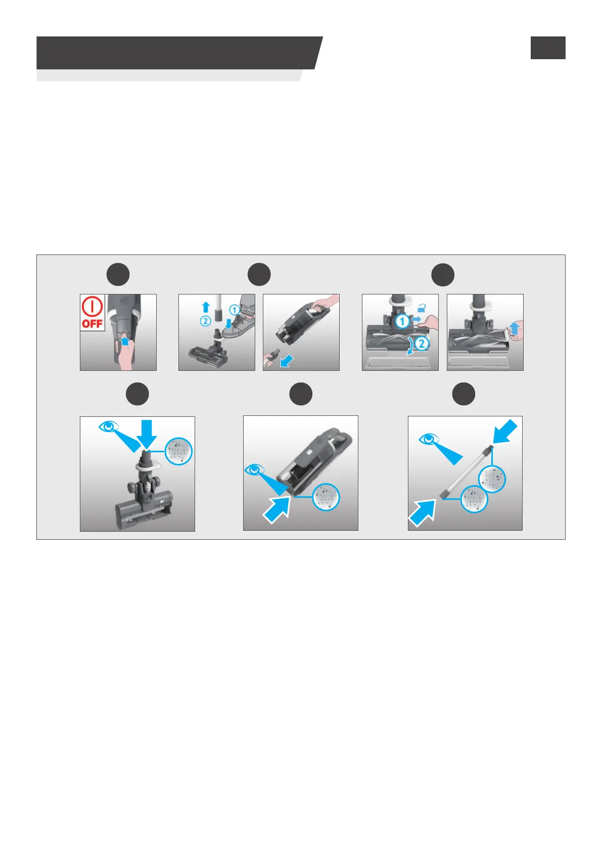 2. Separare la spazzola per pavimenti, il tubo e l’unità portatile come da precedenti istruzioni.