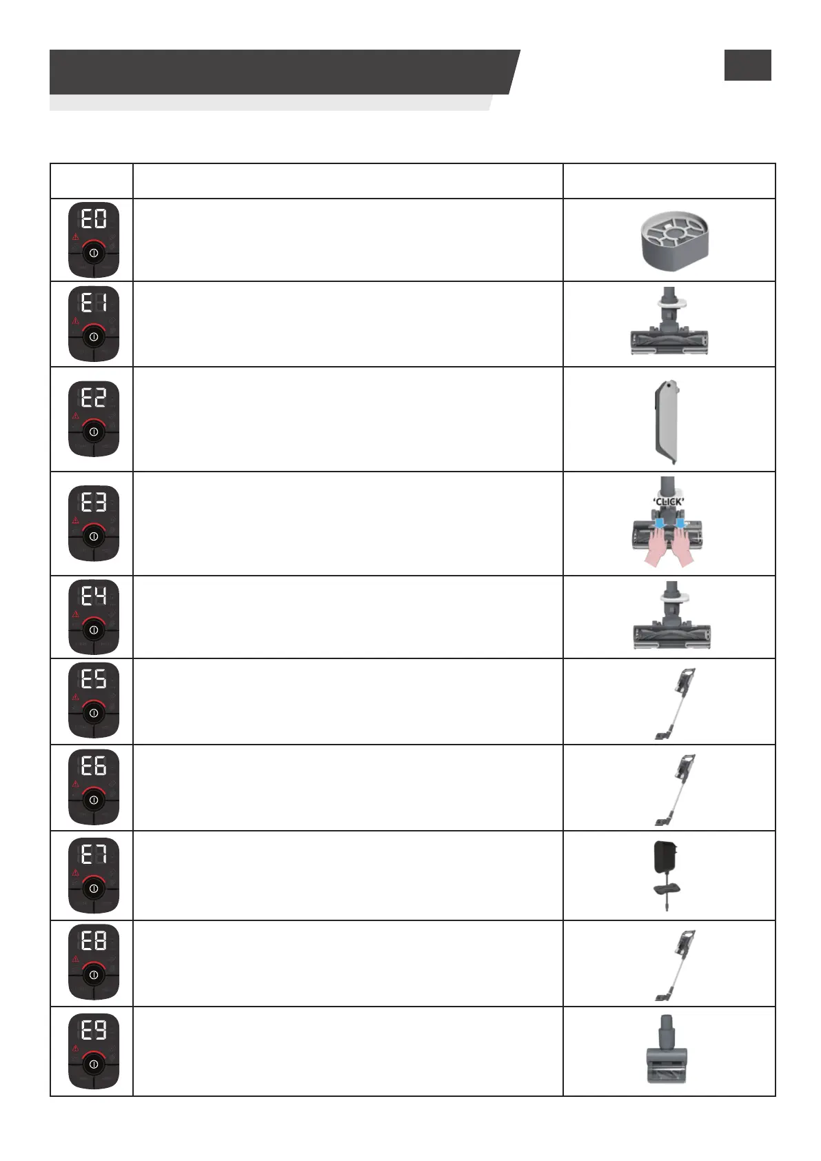La seguente è una lista dei codici di errore & soluzioni riscontrabili per l’apparecchio. Il display a LED