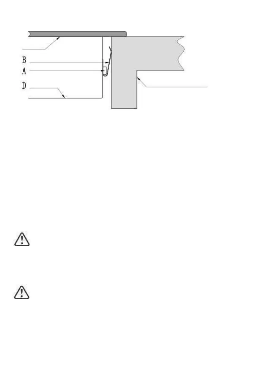 2. Spishällen ska inte installeras direkt ovanför diskmaskin, kyl, frys, tvättmaskin eller