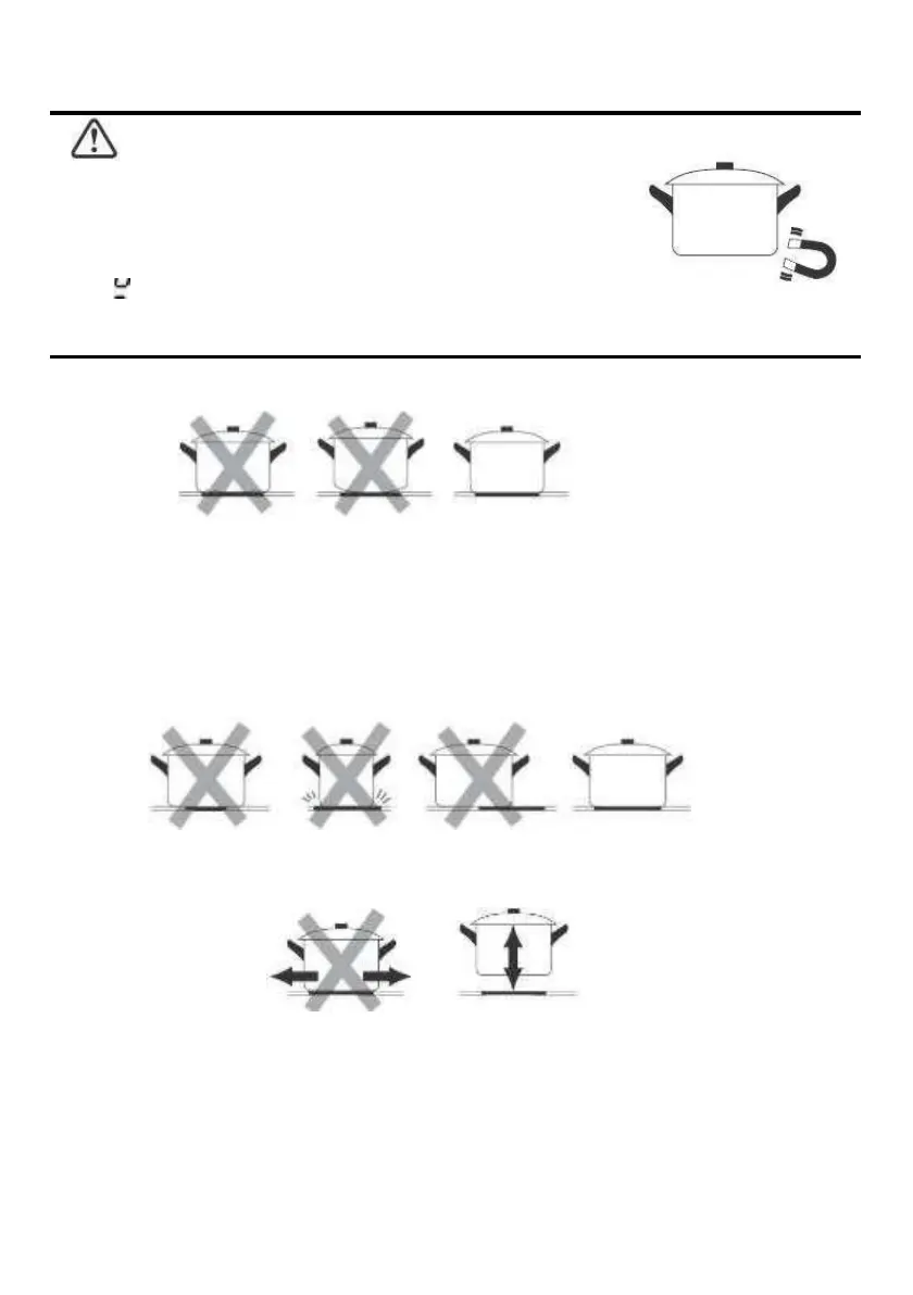 • Seuraavista materiaaleista valmistetut keittoastiat eivät sovellu: puhdas ruostumaton teräs, alumiini tai