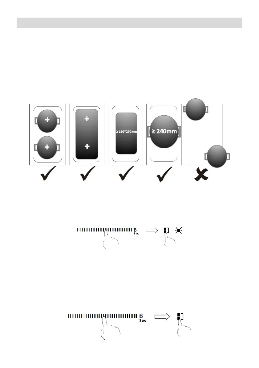 φροντίστε να τοποθετήσετε τα τηγάνια κεντραρισμένα στη ζώνη μαγειρέματος που καλύπτει