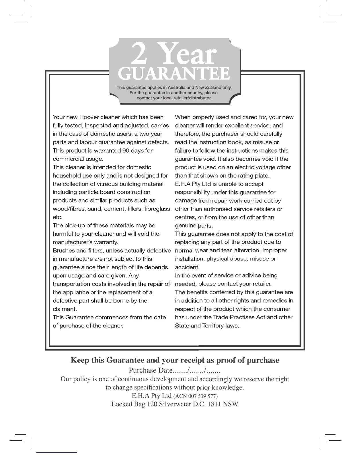 Hoover hygiene + - 2 Year Guarantee