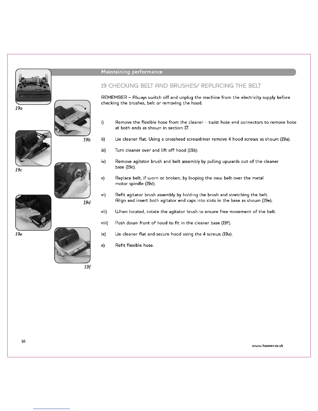 Hoover PERFORMER - Checking Belt and Brushes; Replacing the Belt