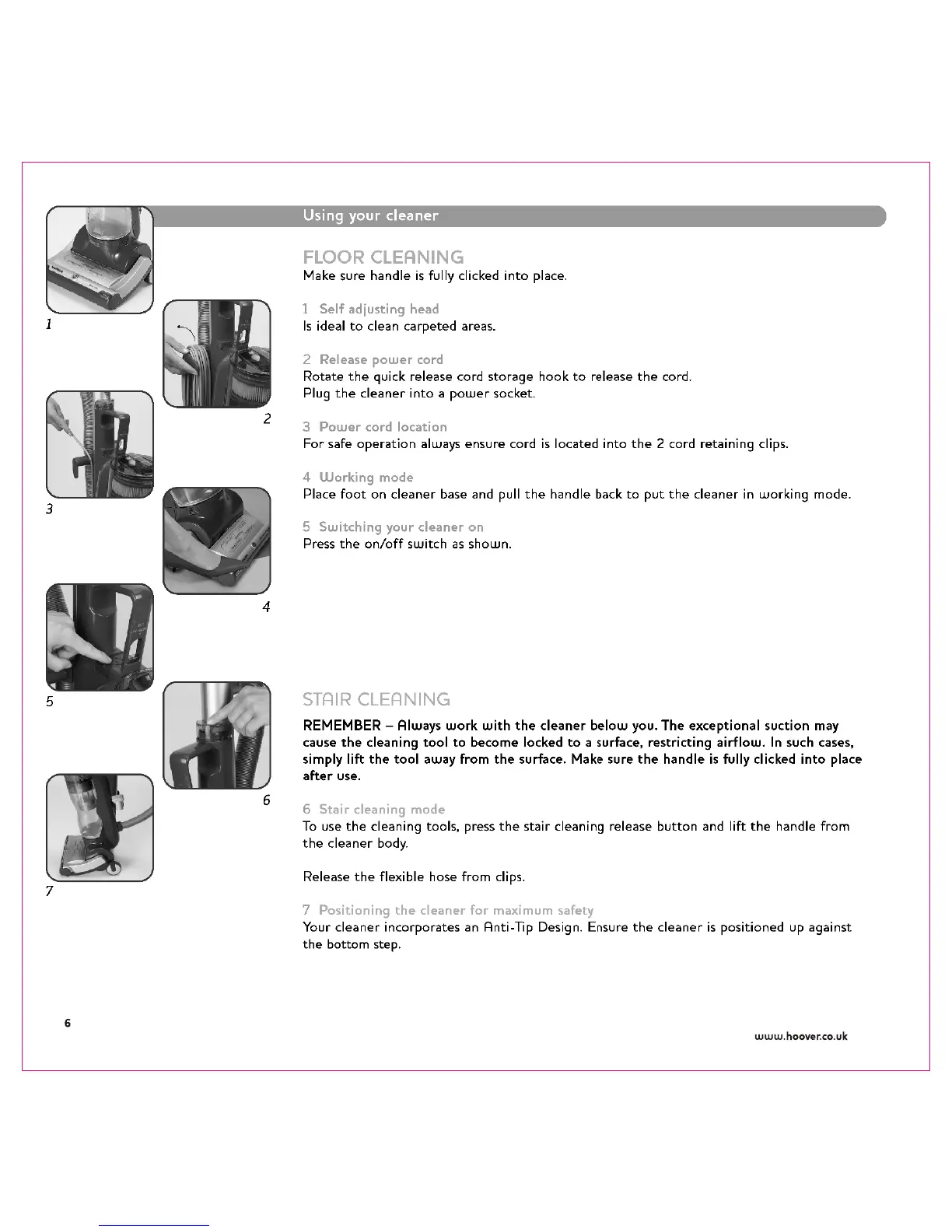 Hoover PERFORMER - Using Your Cleaner; Floor Cleaning; Stair Cleaning