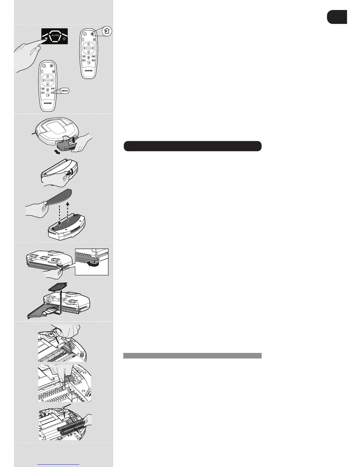 The Robo.com³ is tted with a pre-motor lter. To maintain optimum cleaning performance, regularly