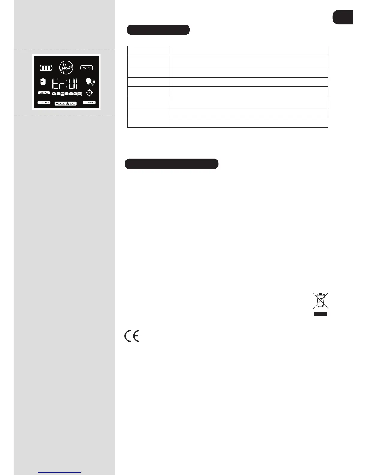 ATTENTION: If any of these failures persist, contact your local Hoover representative. DO NOT try to