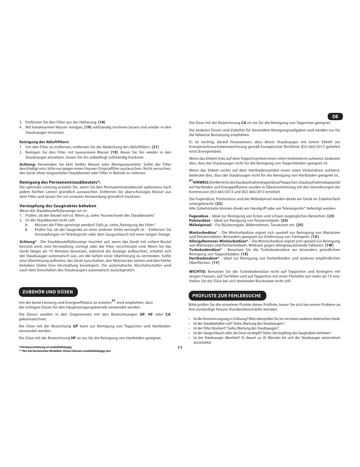 und Polstermöbeln. Besonders geeignet zur Entfernung von Tierhaaren. [1V]