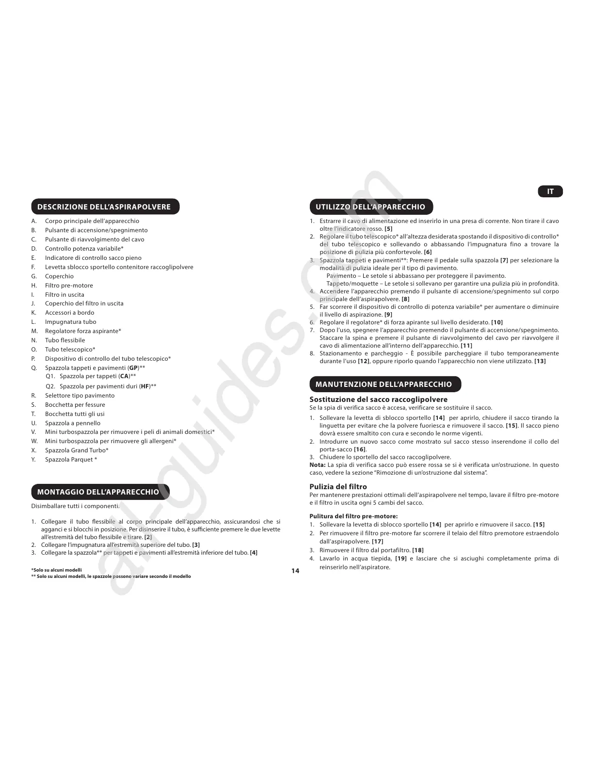 ** Solo su alcuni modelli, le spazzole possono variare secondo il modello