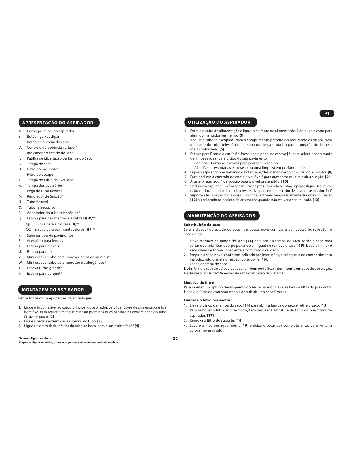 **Apenas alguns modelos, as escovas podem variar dependendo do modelo
