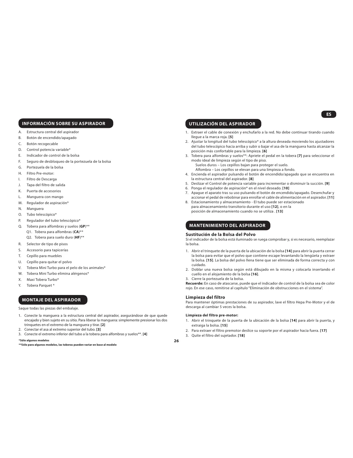 INFORMACIÓN SOBRE SU ASPIRADOR