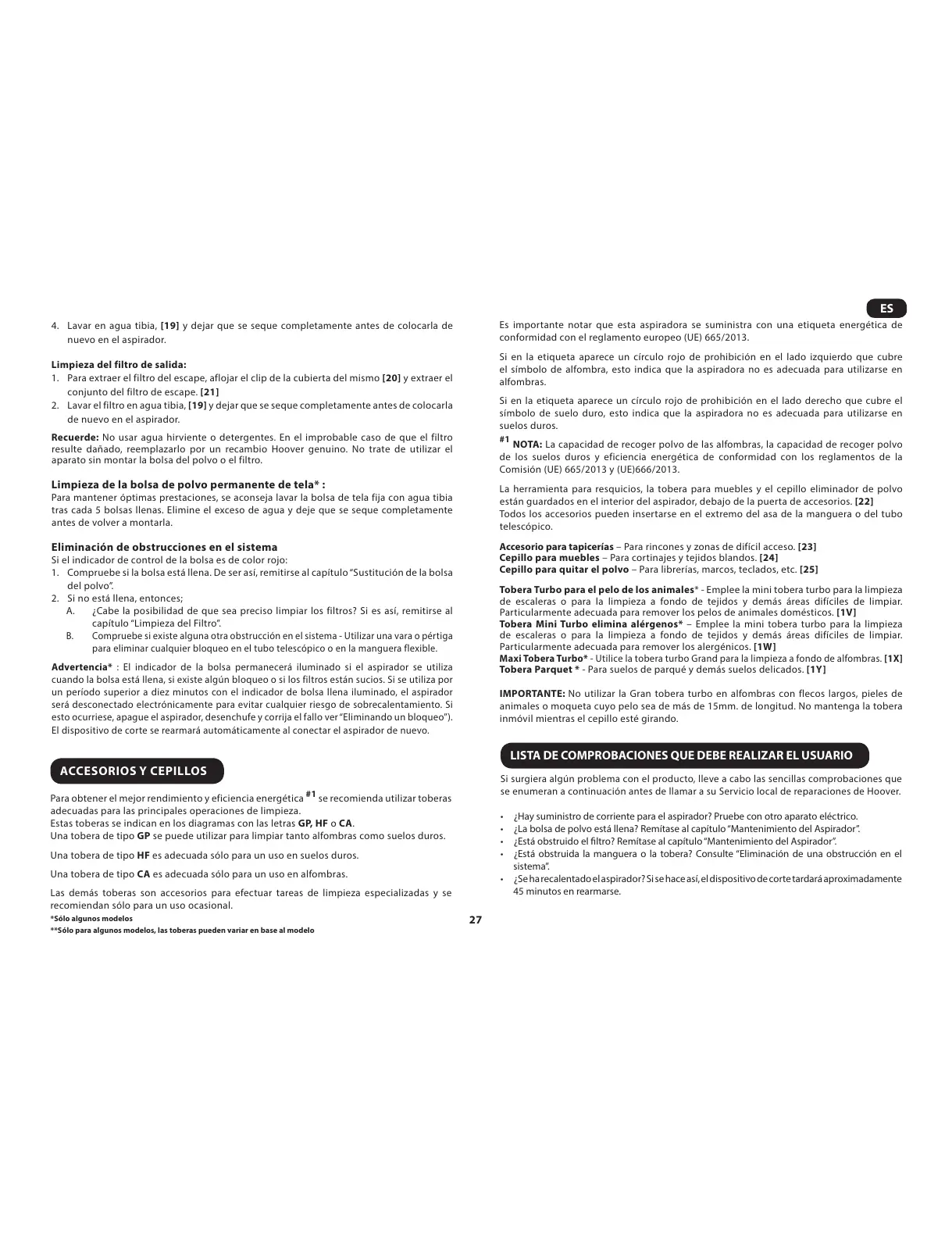 se enumeran a continuación antes de llamar a su Servicio local de reparaciones de Hoover.