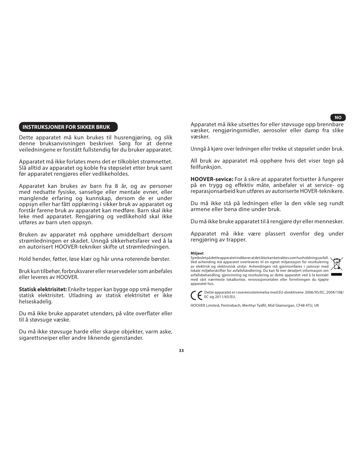 HOOVER-sevice: For å sikre at apparatet fortsetter å fungerer