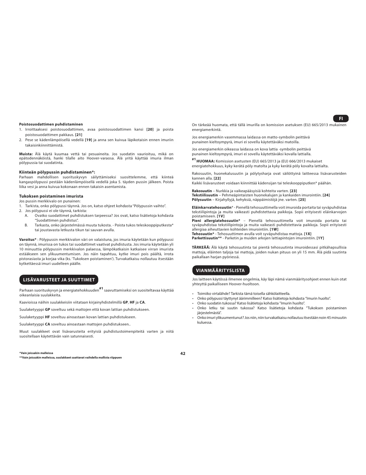 Suulaketyyppi HF soveltuu ainoastaan kovan lattian puhdistukseen.