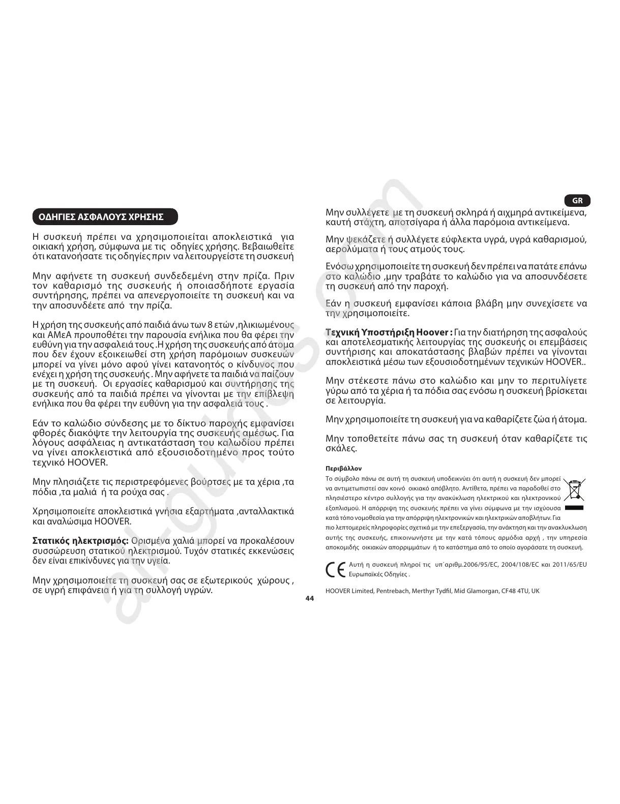 Τεχνική Υποστήριξη Hoover : Για την διατήρηση τη ασφαλού