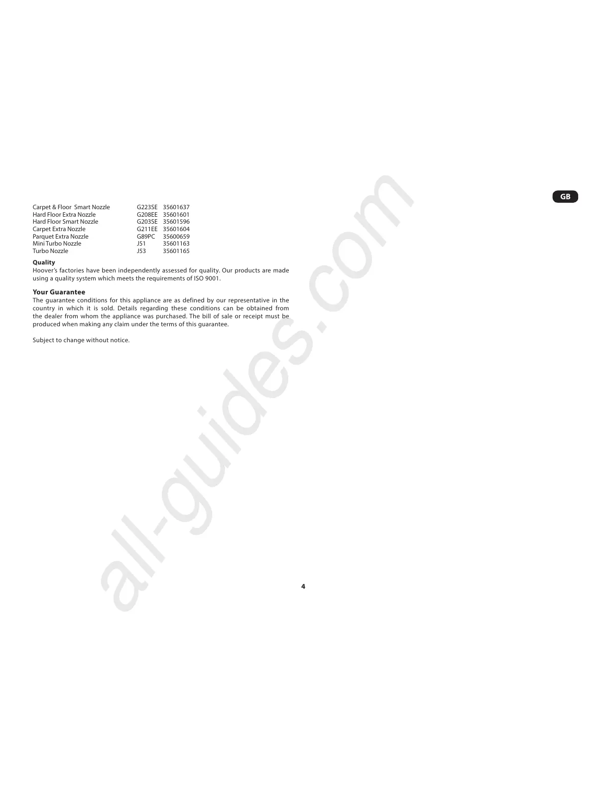 The guarantee conditions for this appliance are as defined by our representative in the