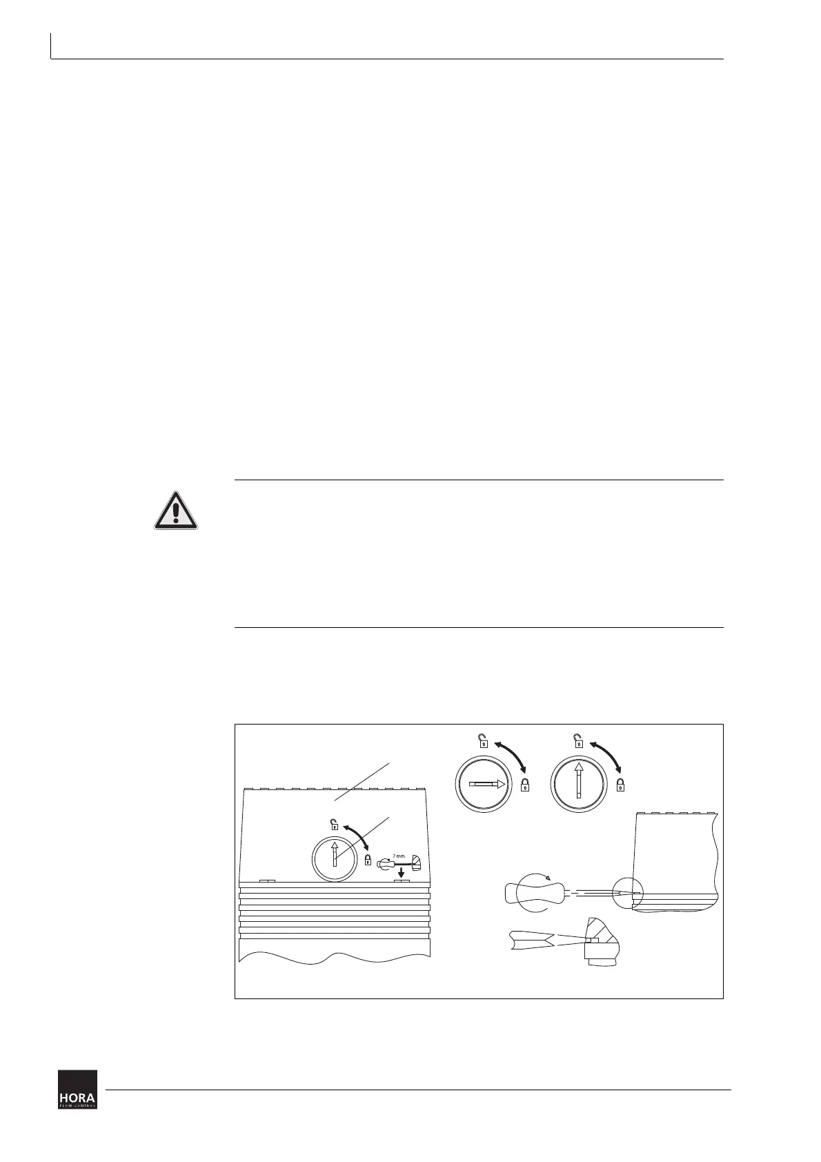 1 Unlock the cover (201). Use a screwdriver (34) to turn the rotary knob counter-