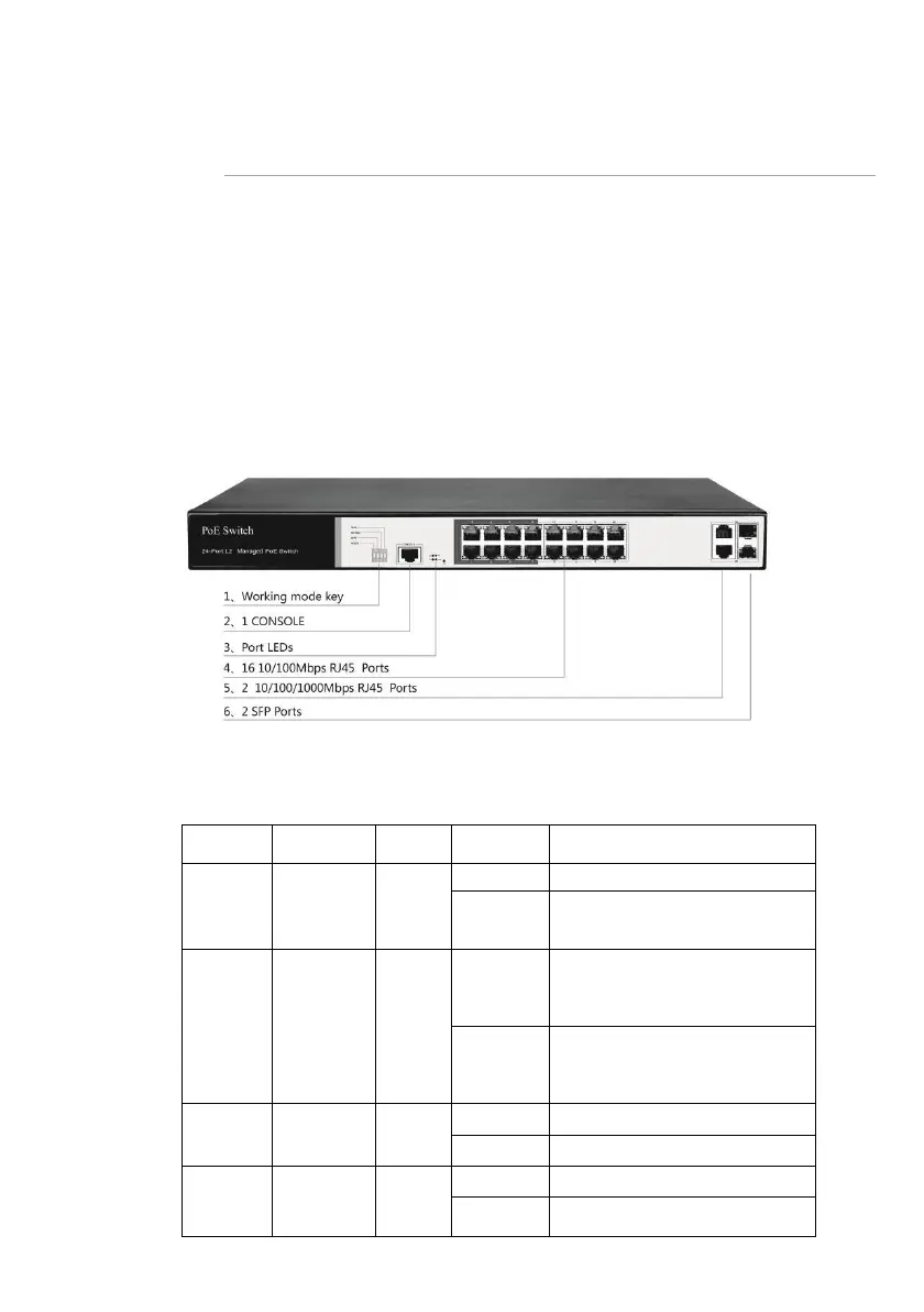 Including indicators, RJ45 port, shortcut buttons, RST button, SFP port, CONSOLE port, as