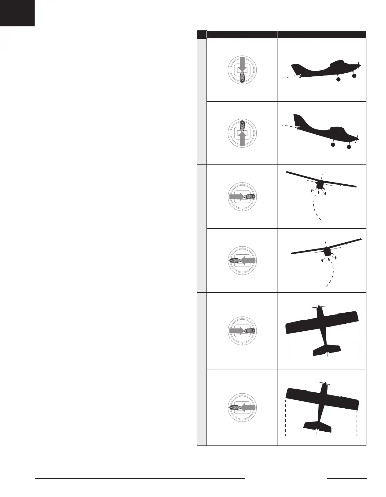 Aileron right and left: Move the aileron stick right to make the aircraft roll or