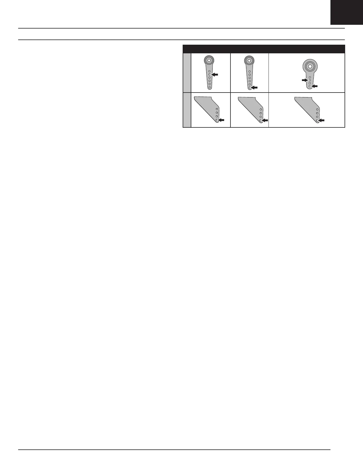 Horizon Hobby Apprentice STS E-flite - Control Surface Settings; Factory Settings for Control Horns and Servo Arms