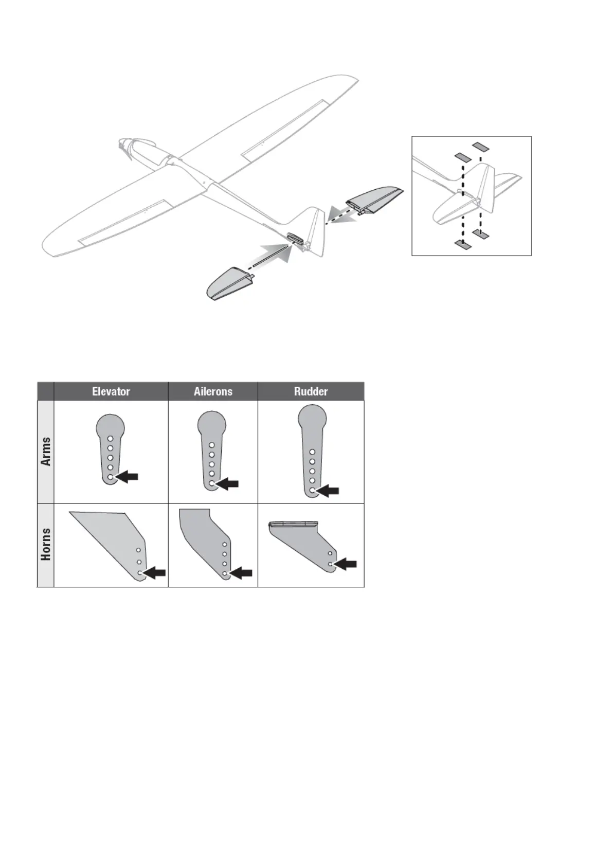 Horizon Hobby E-FLITE Conscendo Evolution - Control Horn and Servo Arm Settings
