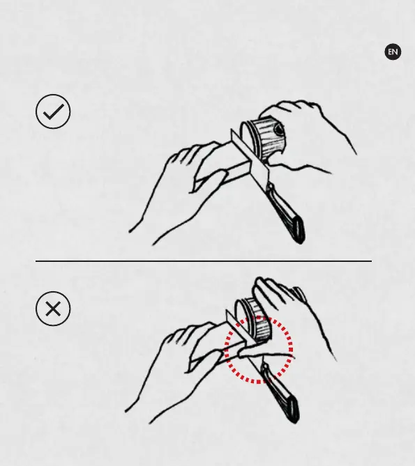 HORL ROLLING SHARPENER - How to Hold It; Correct Holding Technique; Incorrect Holding Technique