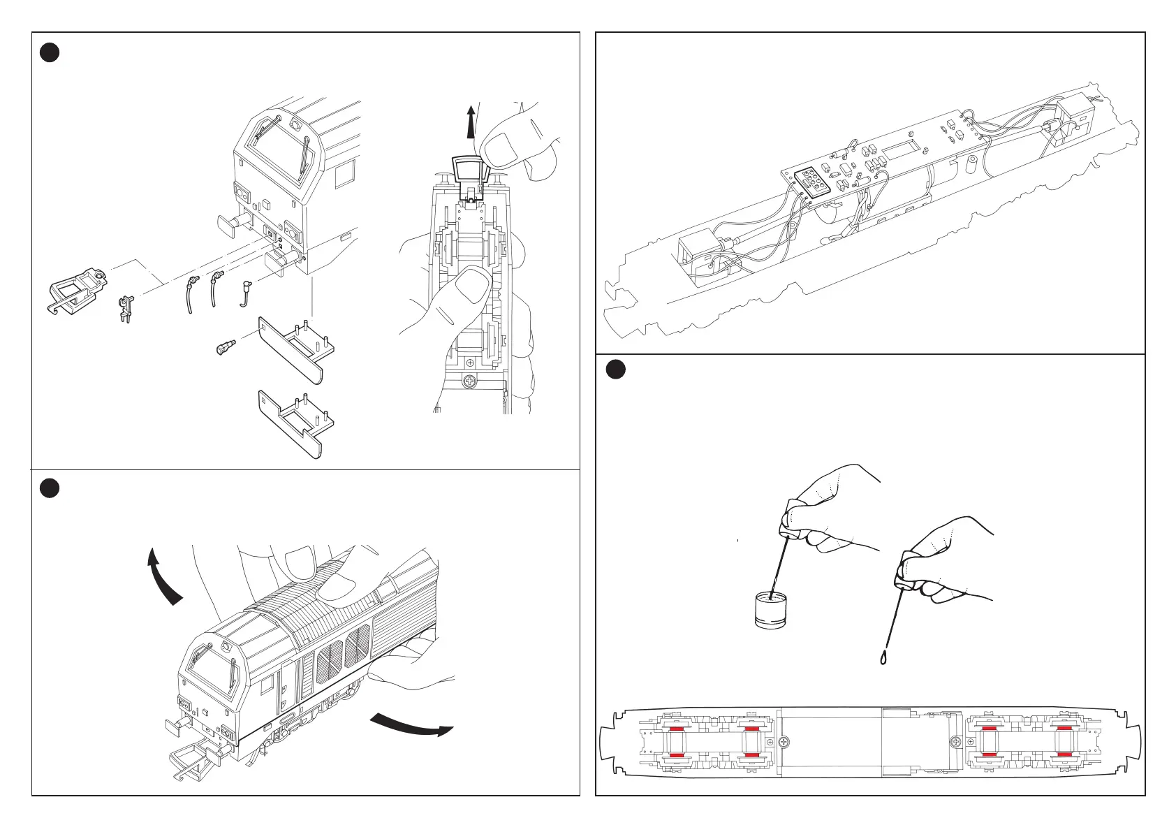applied in exactly the right place. Immediately wipe off any excess oil, especially from the locomotive body.