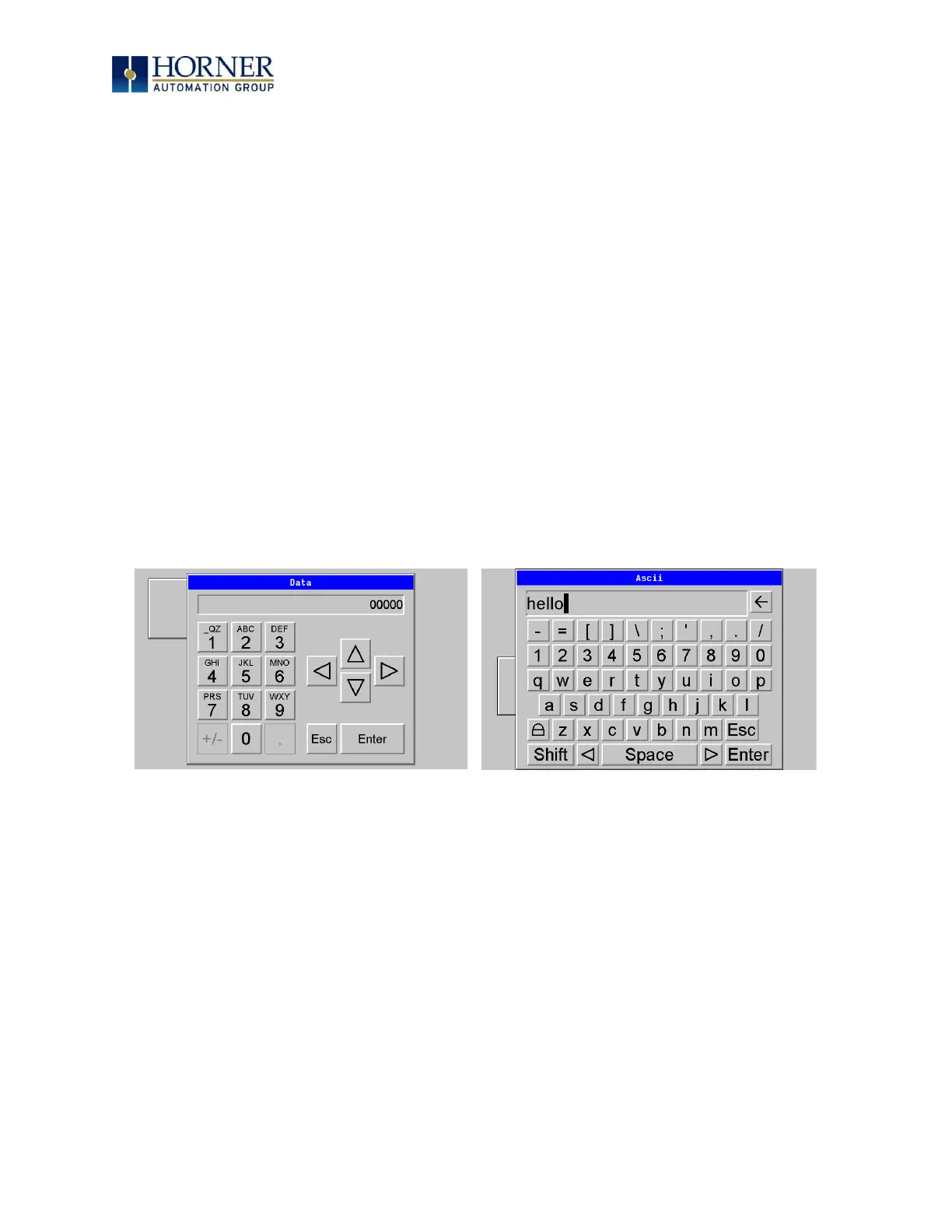 To allow entry of a specific number or text, several of the input objects invoke a pop-up alpha-