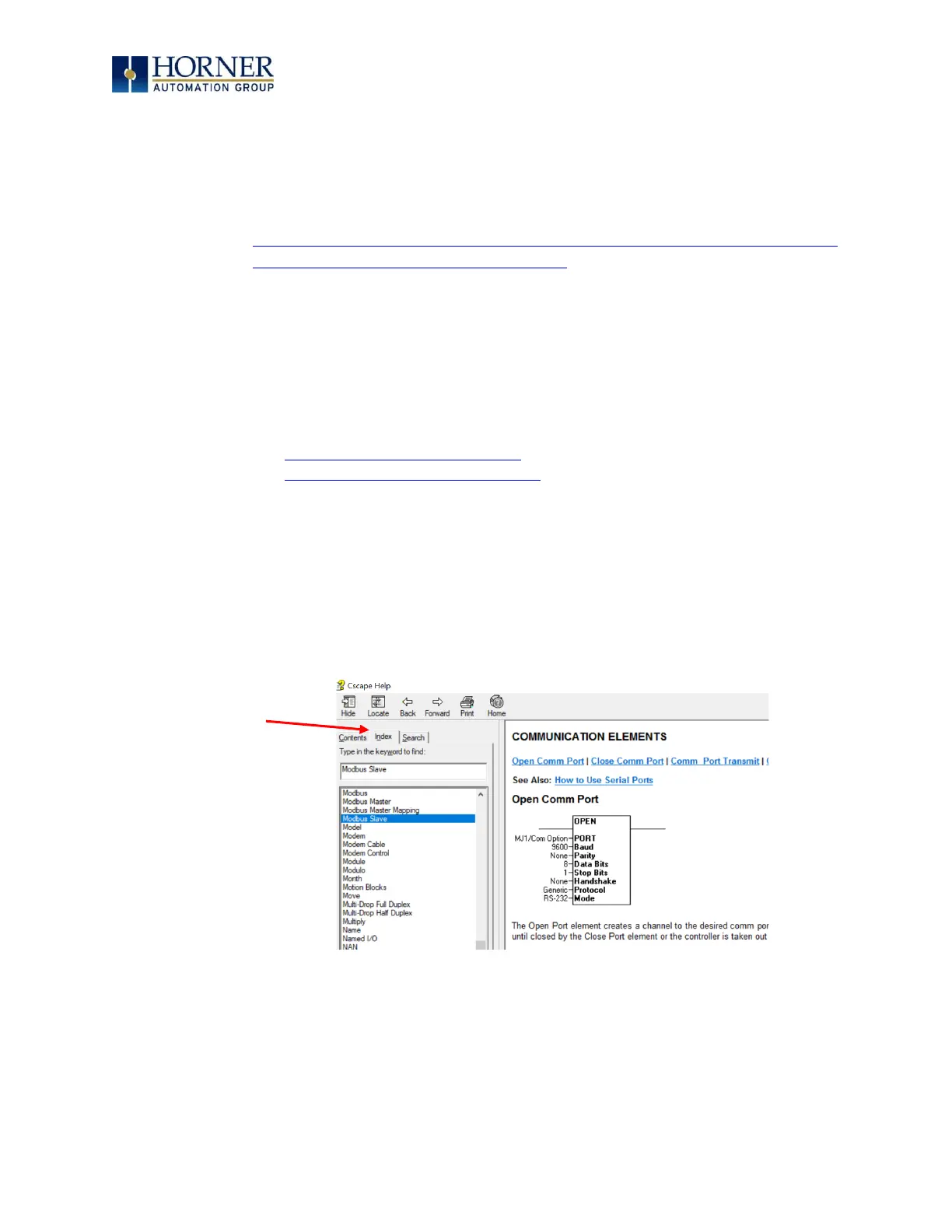 After opening the Cscape Help file, either use the Contest, Index or Search tabs to located
