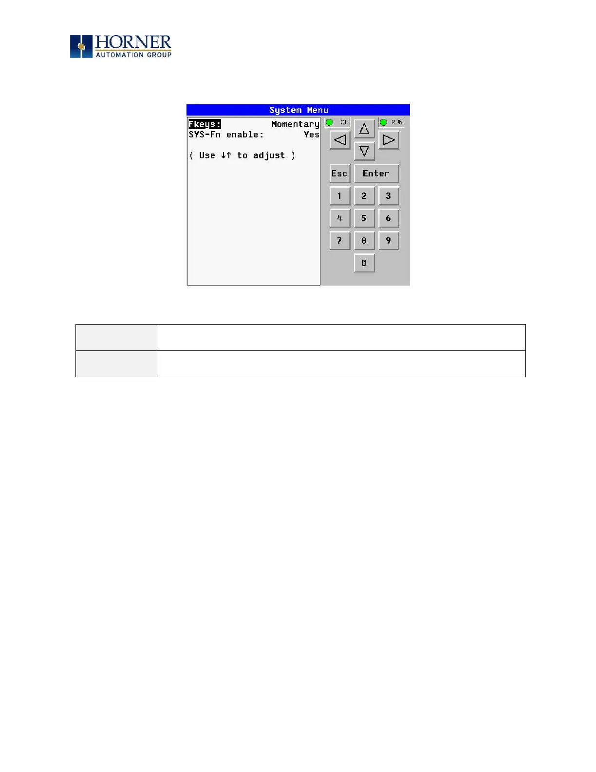HORNER EXL6 0 - Set Fkeys Mode