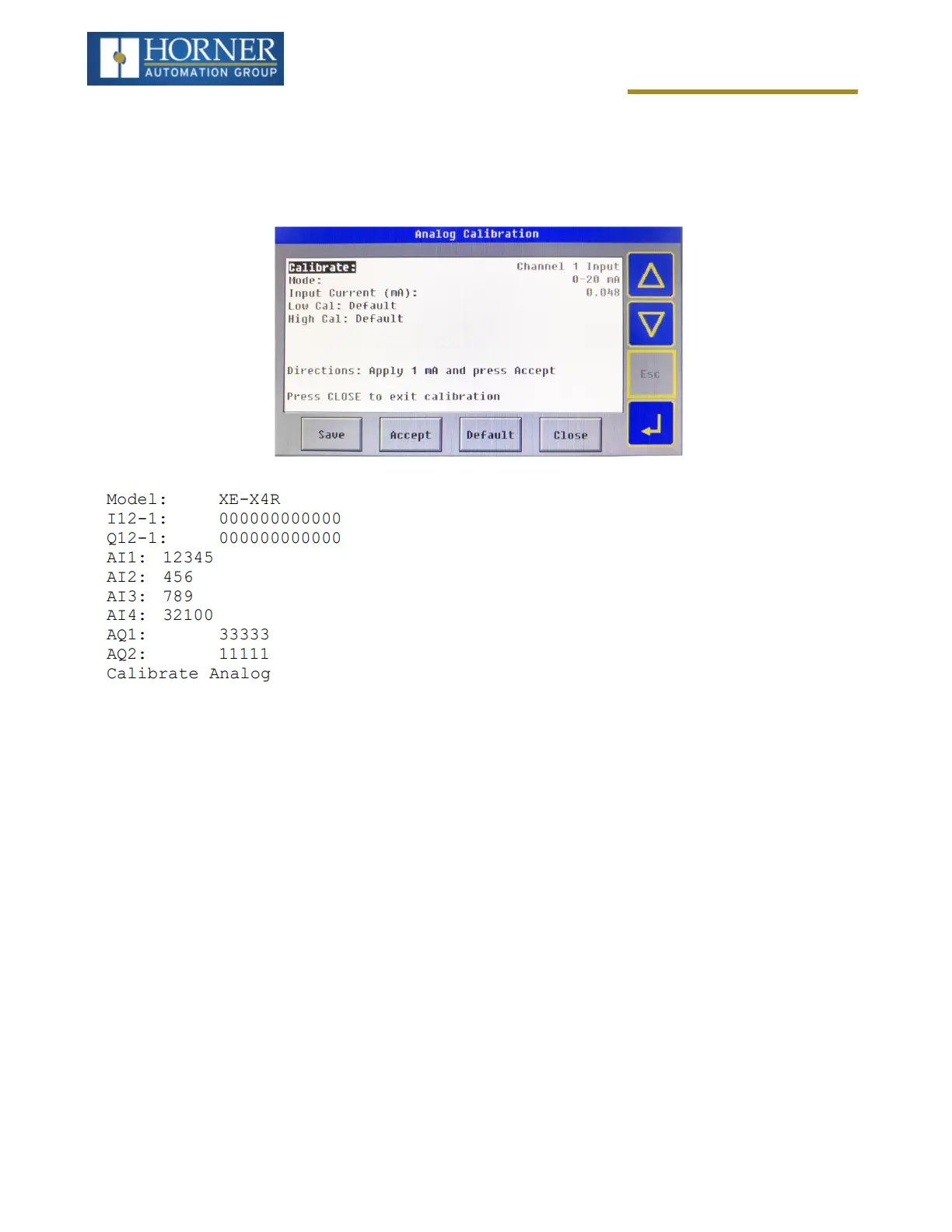 The “Calibrate Analog” item is a sub-menu that, when selected, allows entering the field calibration for analog inputs