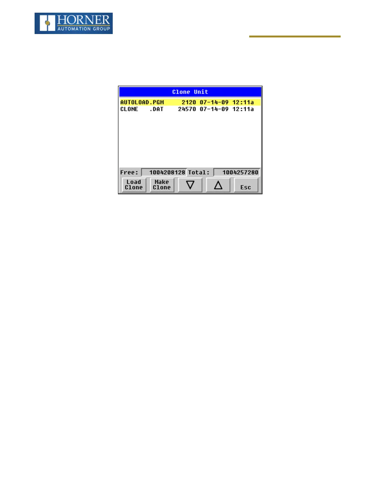 Selecting “Clone Unit” menu will open the following menu screen. Select “Load Clone” (one of the virtual buttons