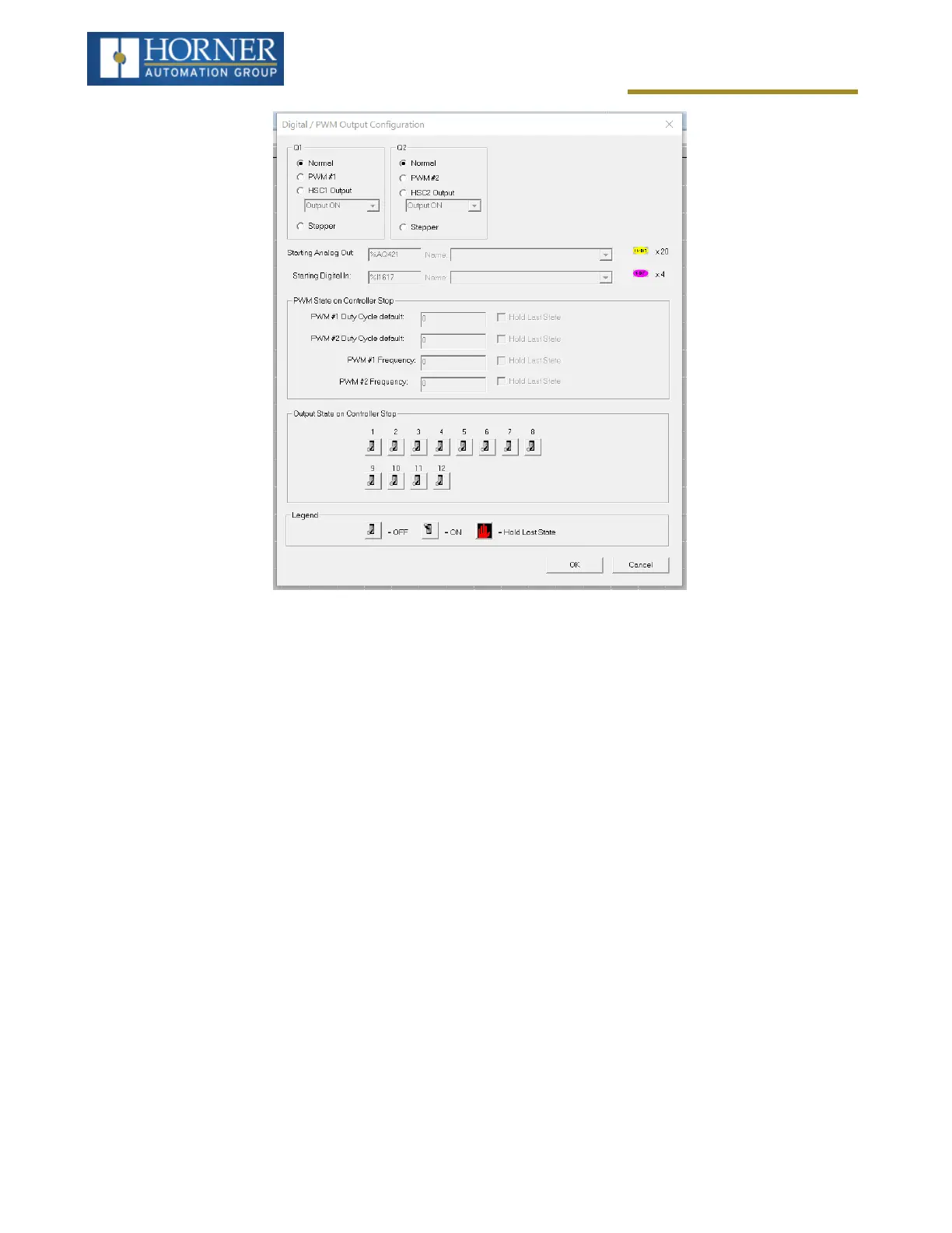 NOTE: The PWM outputs are set to the OFF state at power-up and during program download and remain in that