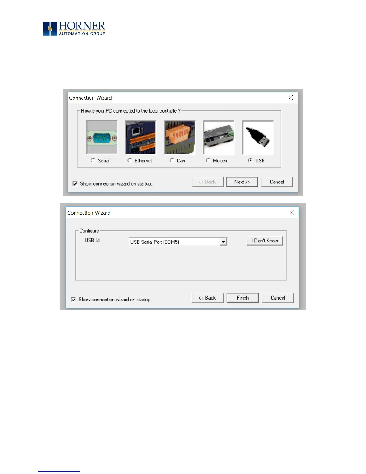 HORNER HE-XE1E2 - Figure 15.01 - Cscape Connection Wizard Screenshots