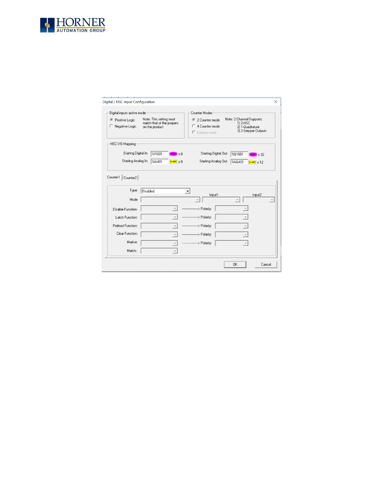 Figure 7.6 – Digital / HSC Input Configuration Dialog