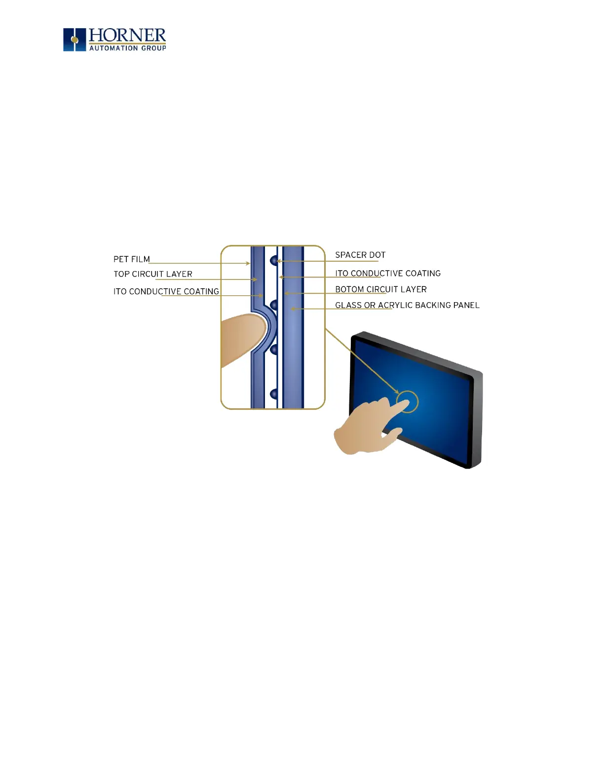 The Horner XL series OCS controllers have a resistive touch screen that allows mechanically