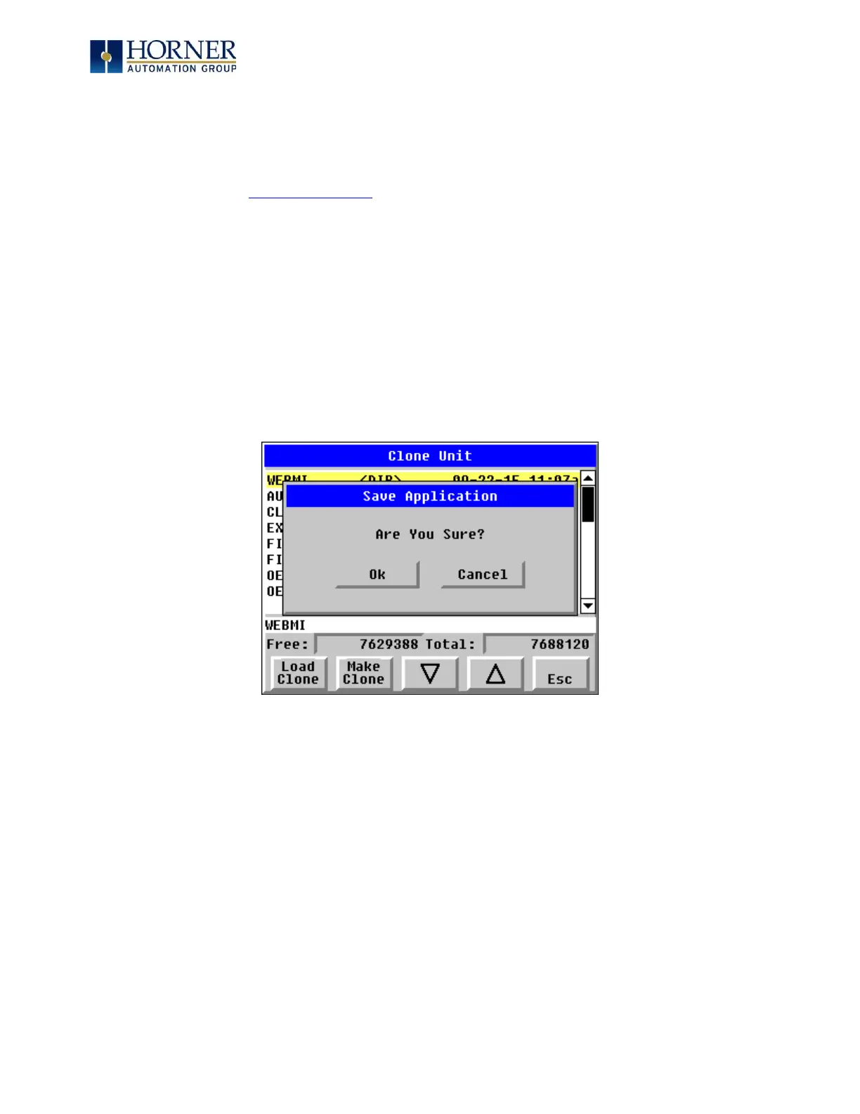 Selecting “Clone Unit” menu will open the following menu screen: