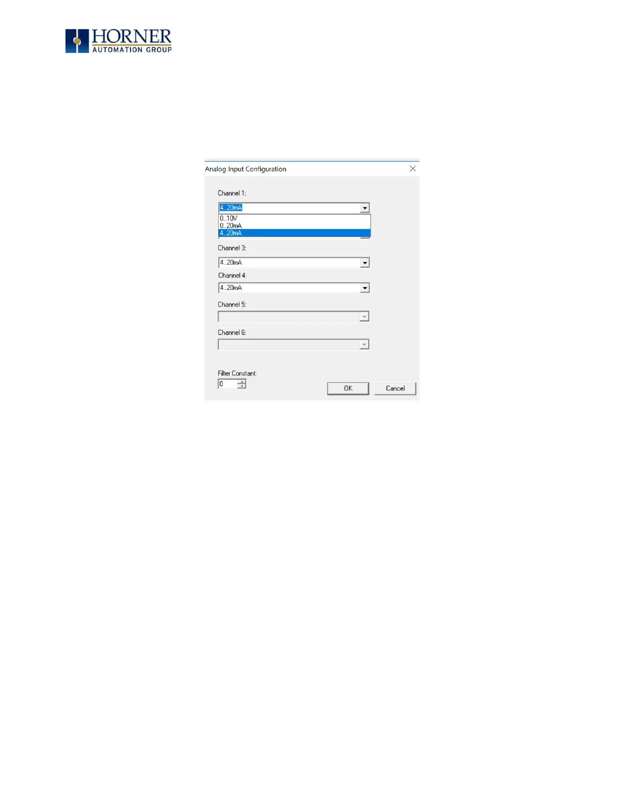 The Channel x drop down windows allow the user to specify the mode for each analog input to