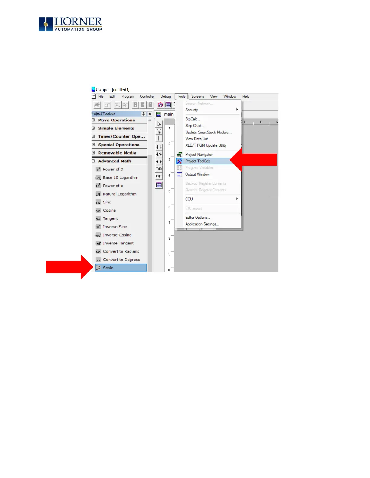 To access the Advanced Math Scaling function, select Tools → Project Toolbox. This will open