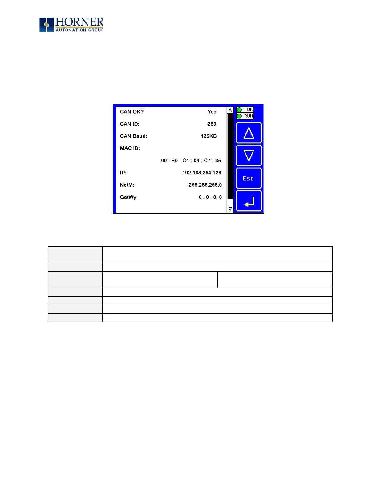 This sub menu allows setting for the CAN and Ethernet network to be viewed or changed.