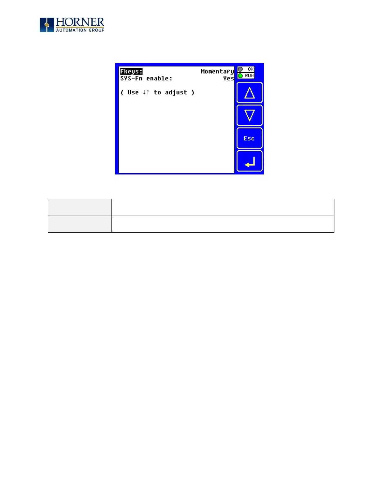 HORNER XL4 - System Menu: Configuring Function Keys (Fkeys)