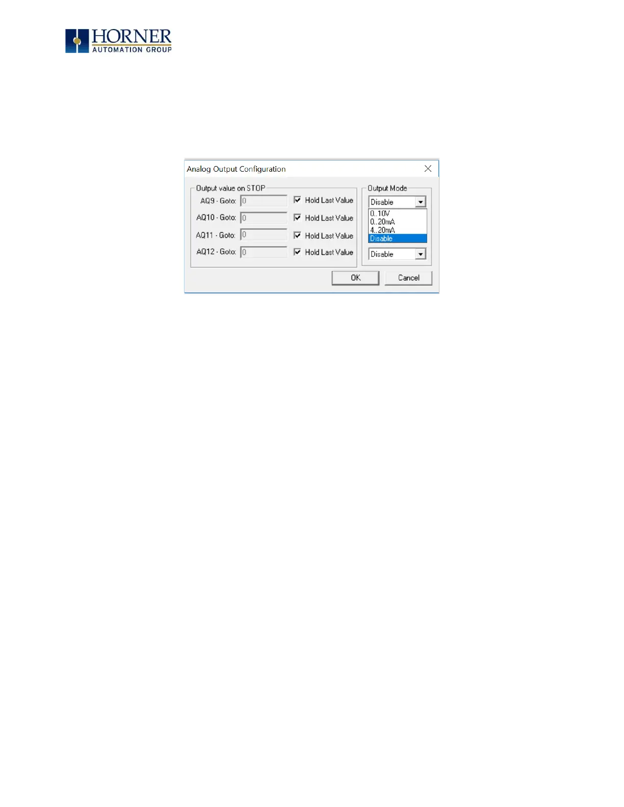 The Output Mode group box allows the user to select the operating modes for each of the analog