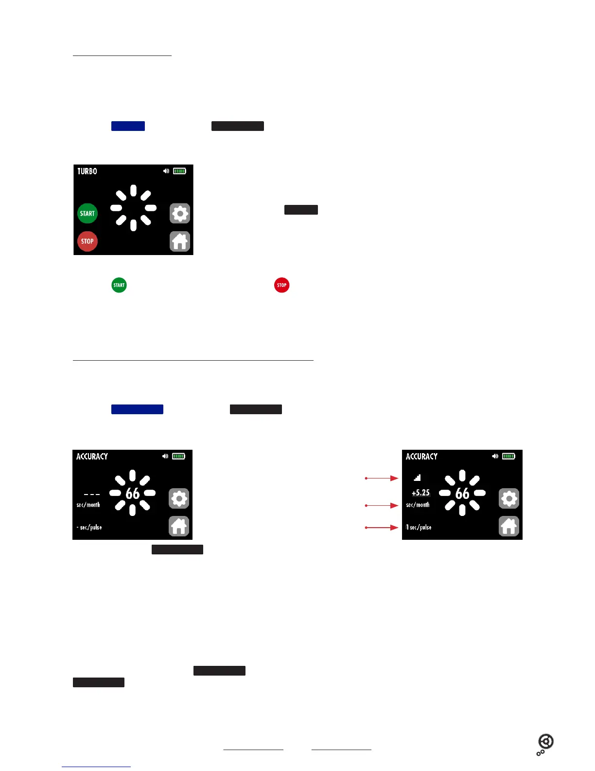 a countdown by pulsations. Once the countdown is finished, the rate accuracy of the watch will be displayed on the screen (in sec/month, for example : -1.75 sec/