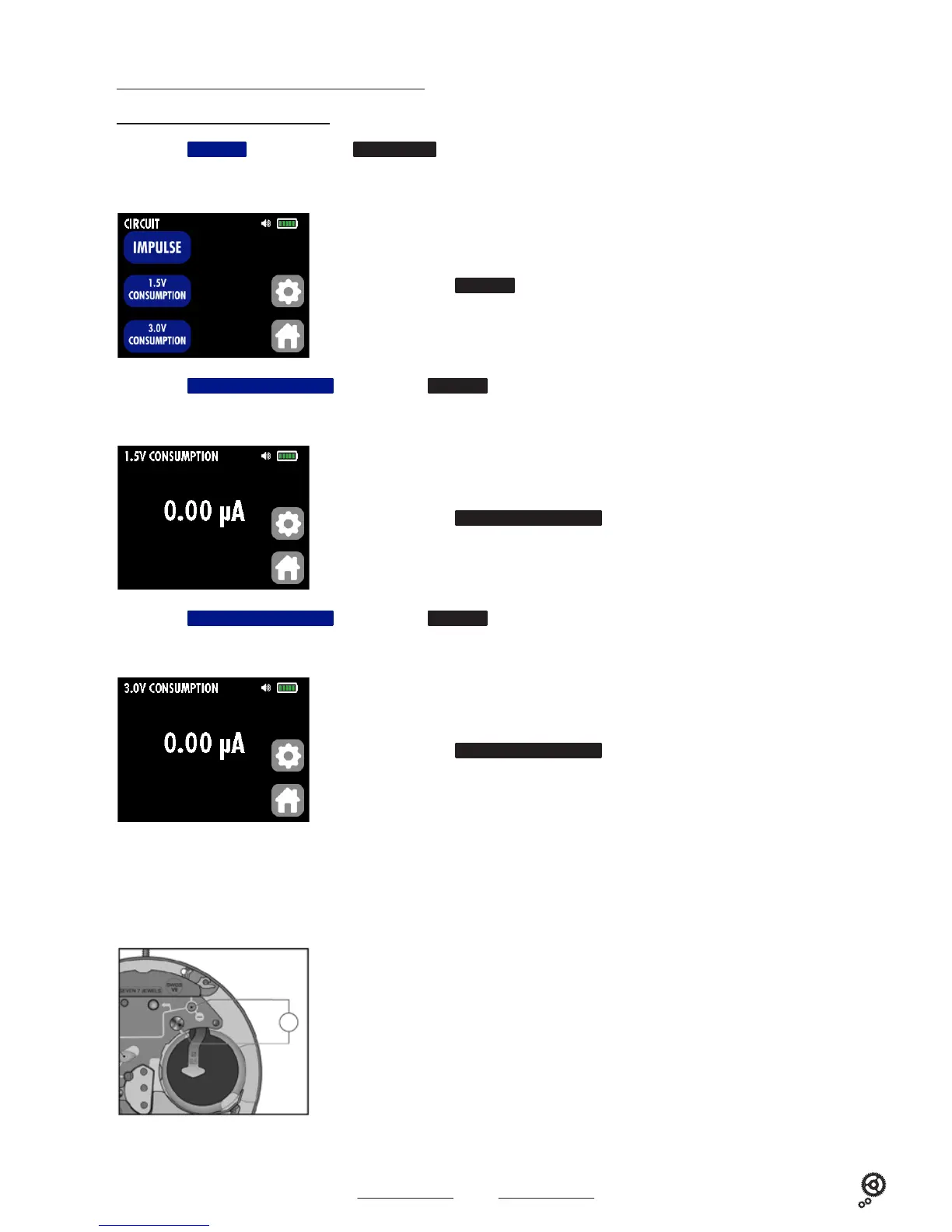 Caution : always choose the right polarity. NEVER CHOOSE the function 3.0 V for a 1.5 V watch.