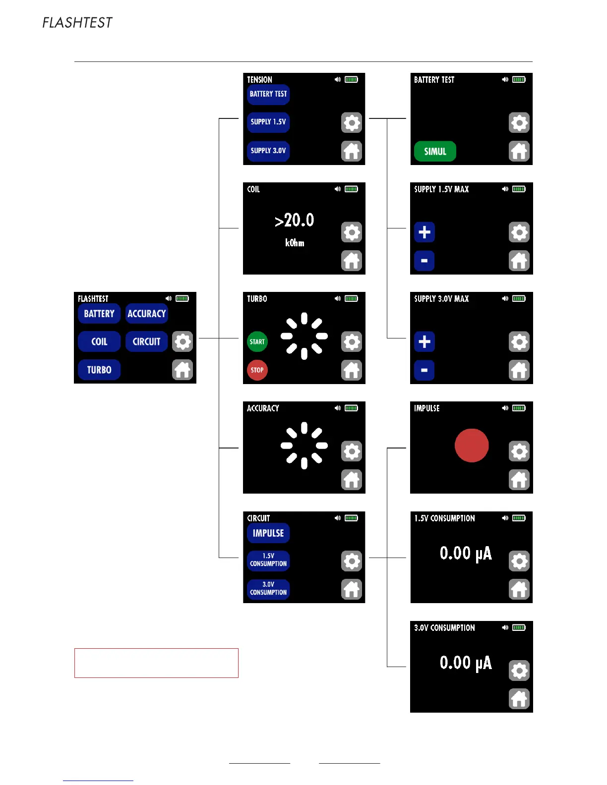 Horotec FLASHTEST - Measurement and Function Guides; Battery Testing Interface; Coil, Turbo, and Accuracy Interfaces; Circuit Test Interfaces