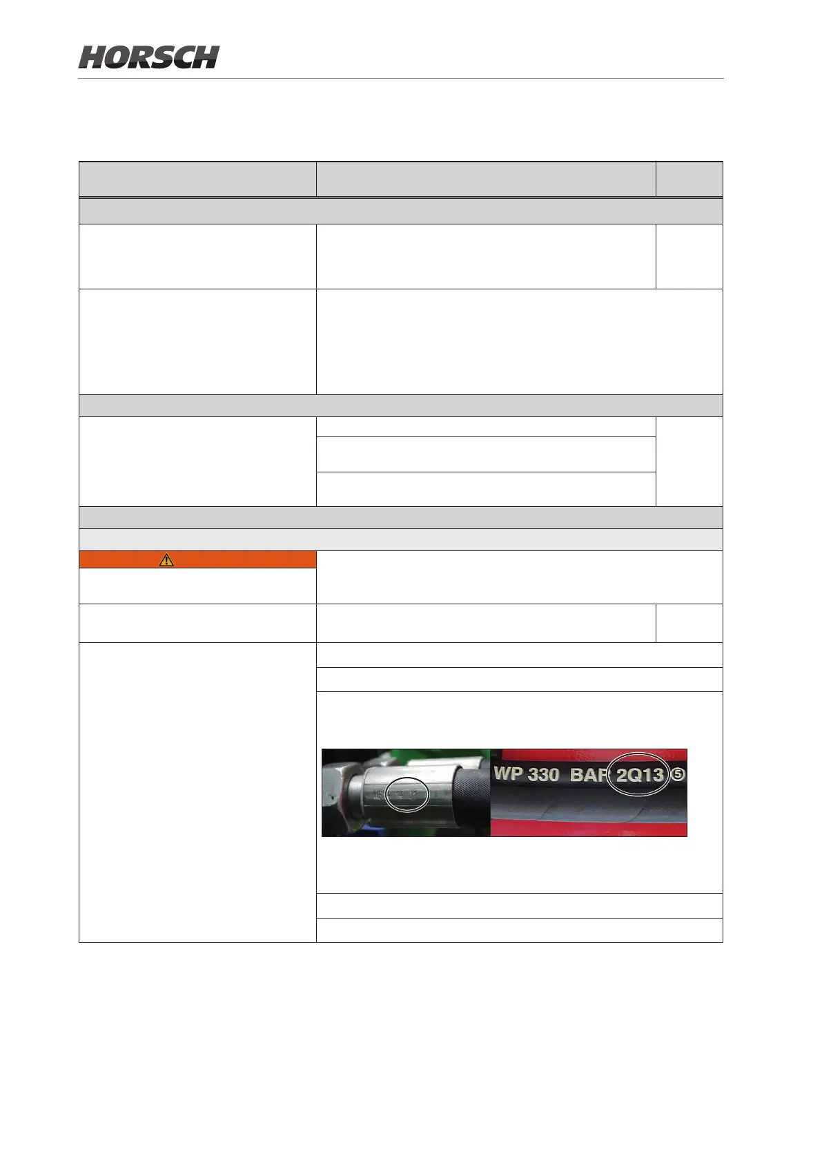 Hydraulic hoses must be replaced after 6 years. For this purpose pay