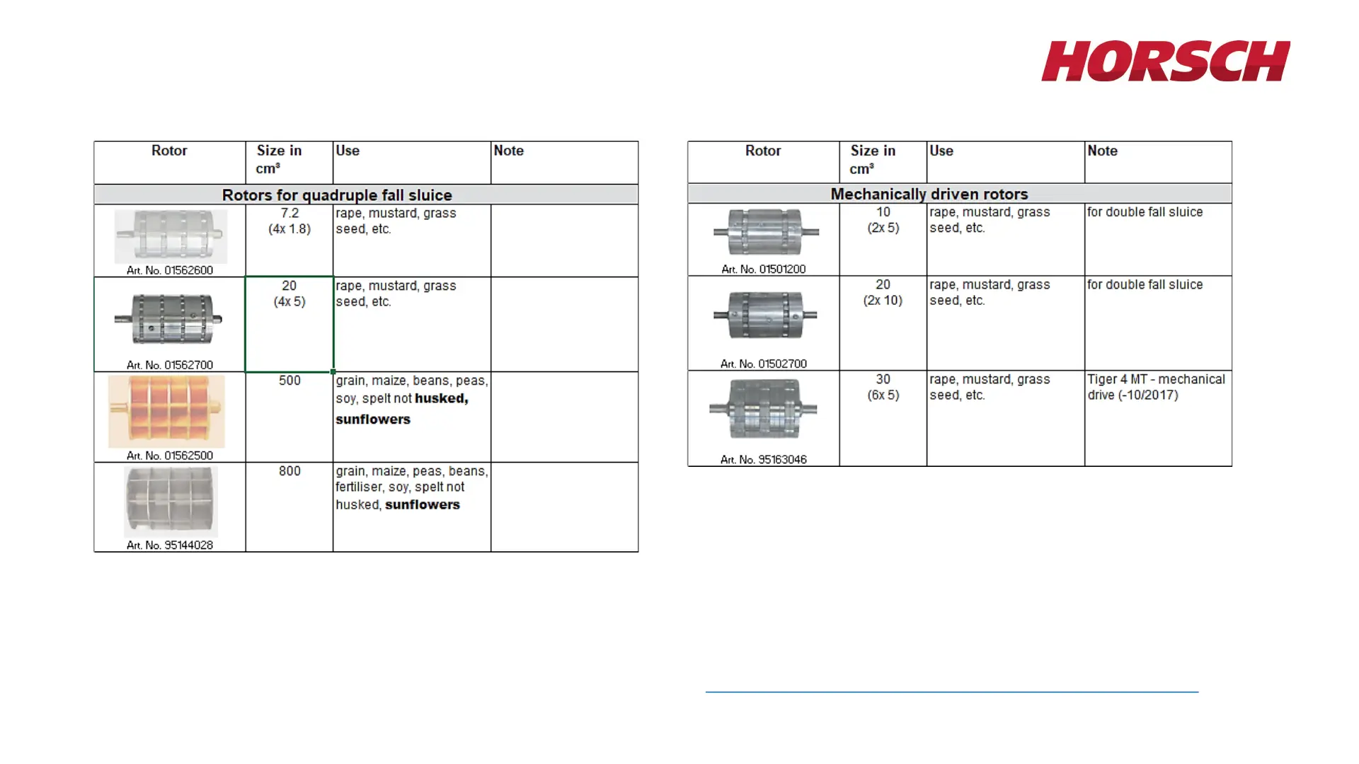 For a complete list of available rotors and service parts, see the model year specific Parts Catalog included with the machine, or for electronic viewing or